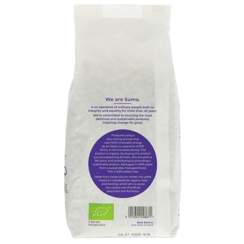 Italian organic pasta made by Iris Bio in Lombardy, northern Italy. Iris Bio have been a workers' cooperative since 1978 (nearly as long as we have!). They make pasta about 10km away from the farm using bronze dies (pasta shaping tools) which help to create a texture that holds a sauce much better than conventional methods . The pasta is made using a low temperature method and is slow dried to ensure optimum nutritional quality.