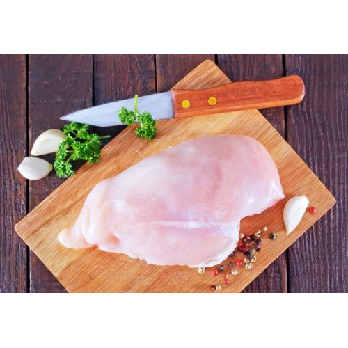 Please Note: This image is for illustrative purposes only. Our chicken breasts generally arrive with skin still on. This is also a guide price only as the weights of birds can vary.